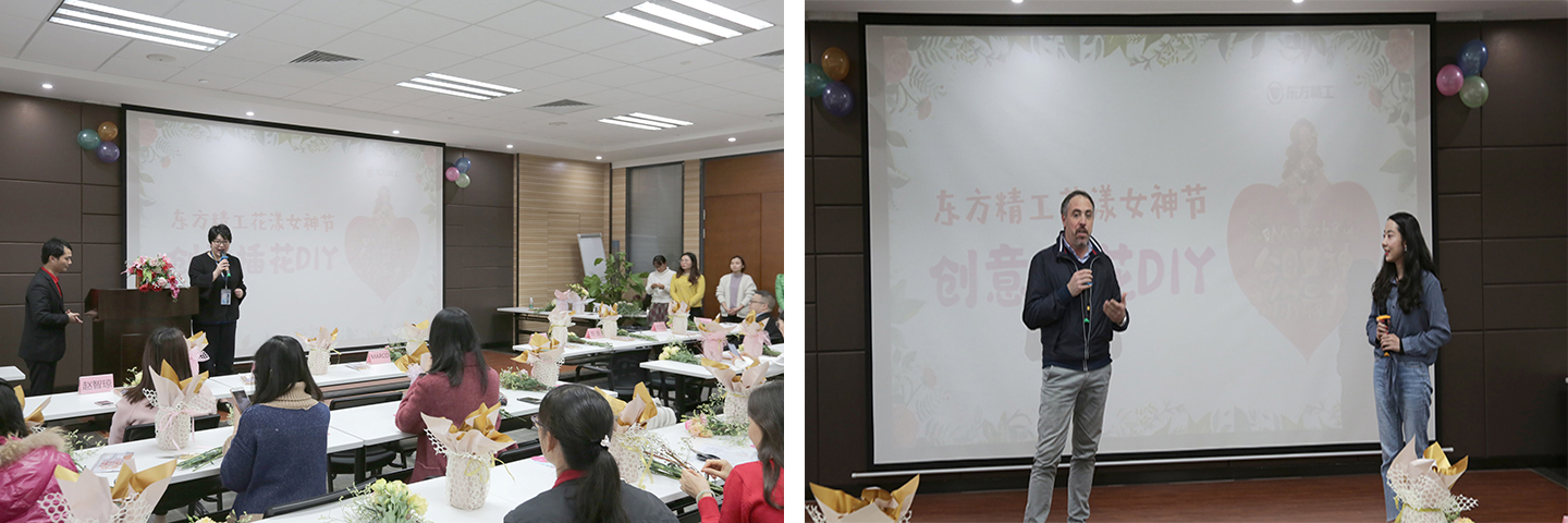 人面桃花相映红,岁月巾帼显风流。在花艺DIY的活动现场,伟德国际1946官网集团副总裁谢毅书发表了热情洋溢的节日贺词,而来自佛斯伯亚洲的Marco Bertola也为公司的女神们献上真挚的祝福。女性是伟大的,母爱是无私的。这个世界因为有女性而精彩,这个世界因为有了女人而美丽!领导们的殷殷话语,让人倍感温馨与鼓舞。