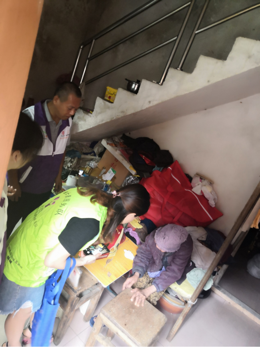 在吴屋村,义工志愿者们饶有兴致地询问老人们的兴趣爱好、过往的经历和工作经验,了解他们近期的身体、生活状况,谈论一些他们生活上的琐事和趣事,也会搞怪地问他们:“你们每天经常做什么呀?”、“喜欢听广播和收音机吗?”,“自己做饭种菜吗?”,“跳不跳广场舞?”等之类的问题。老人们有的笑而不答,有的则笑嘻嘻地说“好的,好的,你们可以经常来看我,我已经很开心了!谢谢你们”。