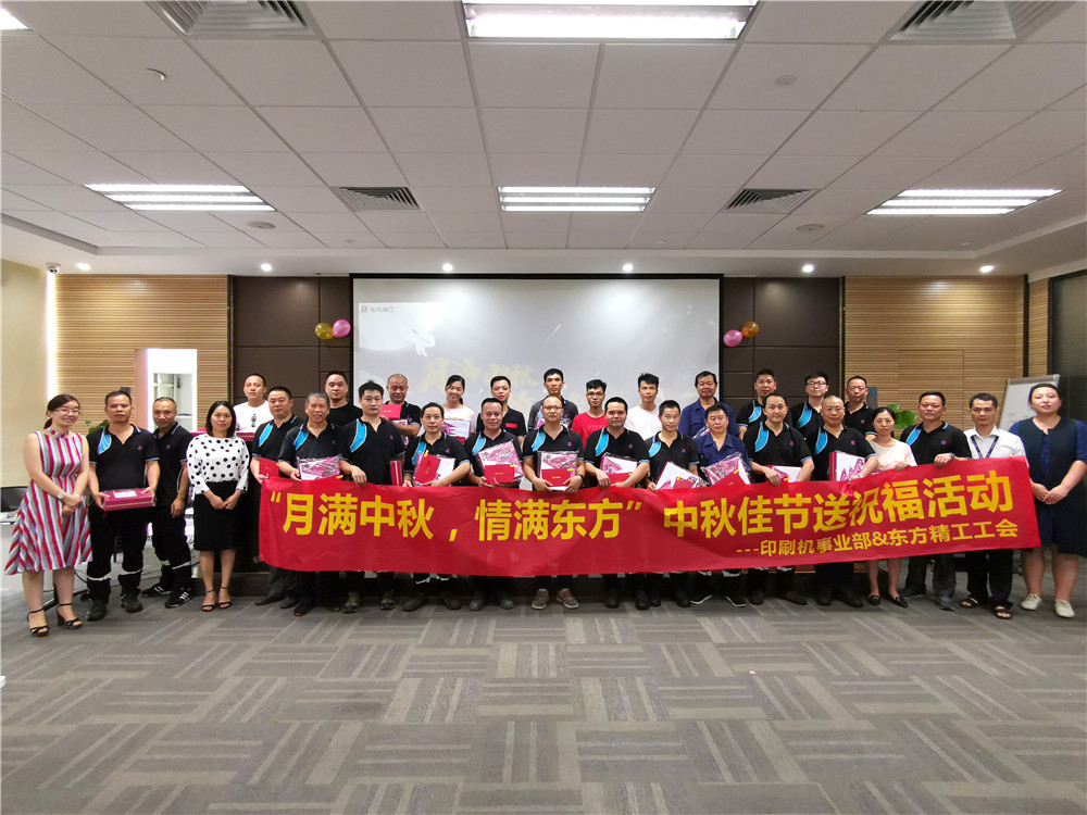 为体现公司以人为本,关爱员工的理念,表达对印刷机事业部荣获2018年度优秀个人称号和忠诚奉献奖项员工的辛勤工作的感谢和肯定,9月9日上午,在中秋佳节来临之际,印刷机事业部联合伟德国际1946官网工会共同举办“月满中秋,情满东方”中秋佳节送祝福活动,30多位公司领导及员工欢聚一堂,共迎中秋佳节。