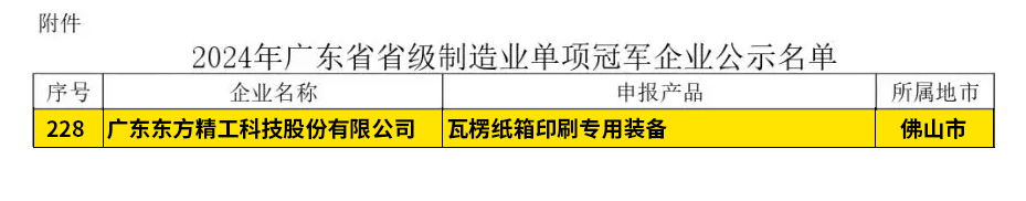 伟德国际1946官网凭借“瓦楞纸箱印刷专用设备”荣膺“广东省制造业单项冠军企业”称号!