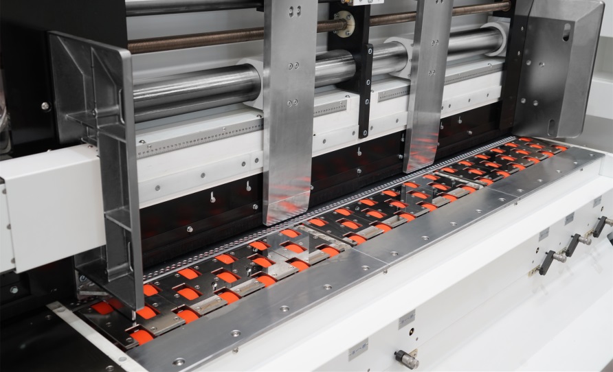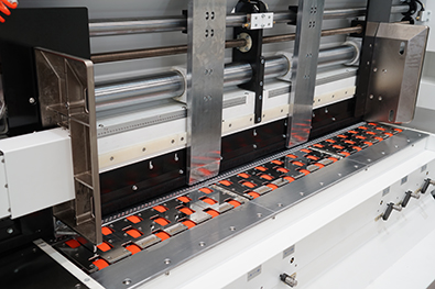 • 弹性切角刀结构,三层和五层纸板无需调整,操作方便